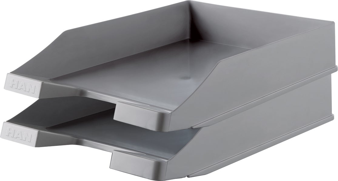 Mellan brevkorg HAN tillverkad av styrenplast. Stapelbara med de övriga brevkorgarna från Han.