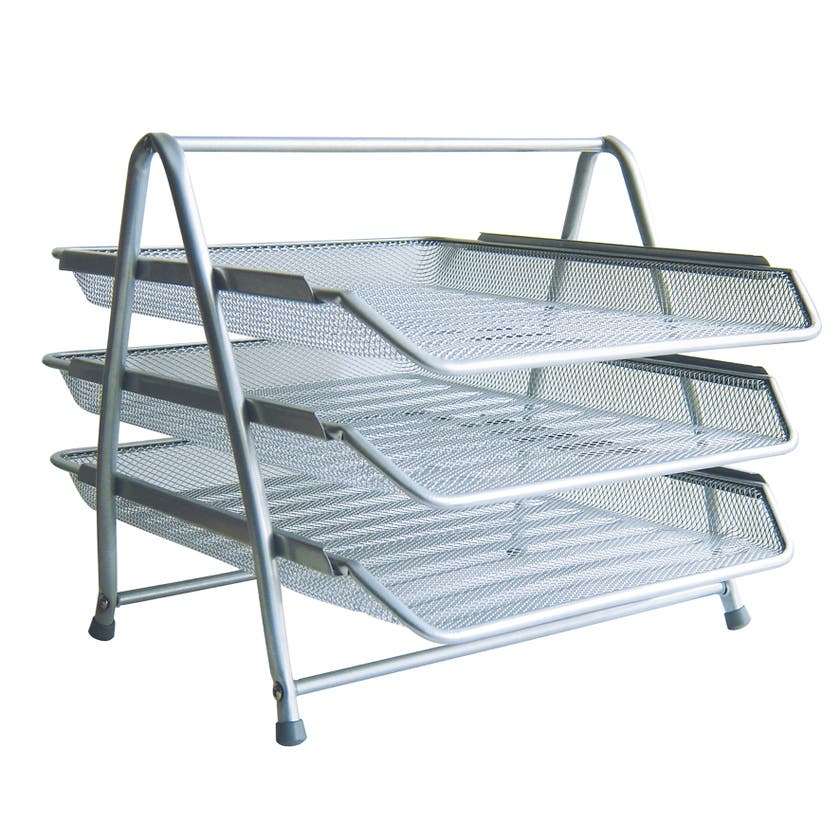 Brevkorg Tråd med tre fack i ställning av metalltråd i modern design. Ställningen med 3 skjutbara fack för A4-format. Enkelt och lätt skapar du ordning på kontoret, hemma och i skolan på ett funktionellt sätt. Håller enkelt koll på olika arbetsuppgifter som behöver sorteras. De halv öppna trådfacken gör det ännu enklare att se vad som ligger i respektive fack.