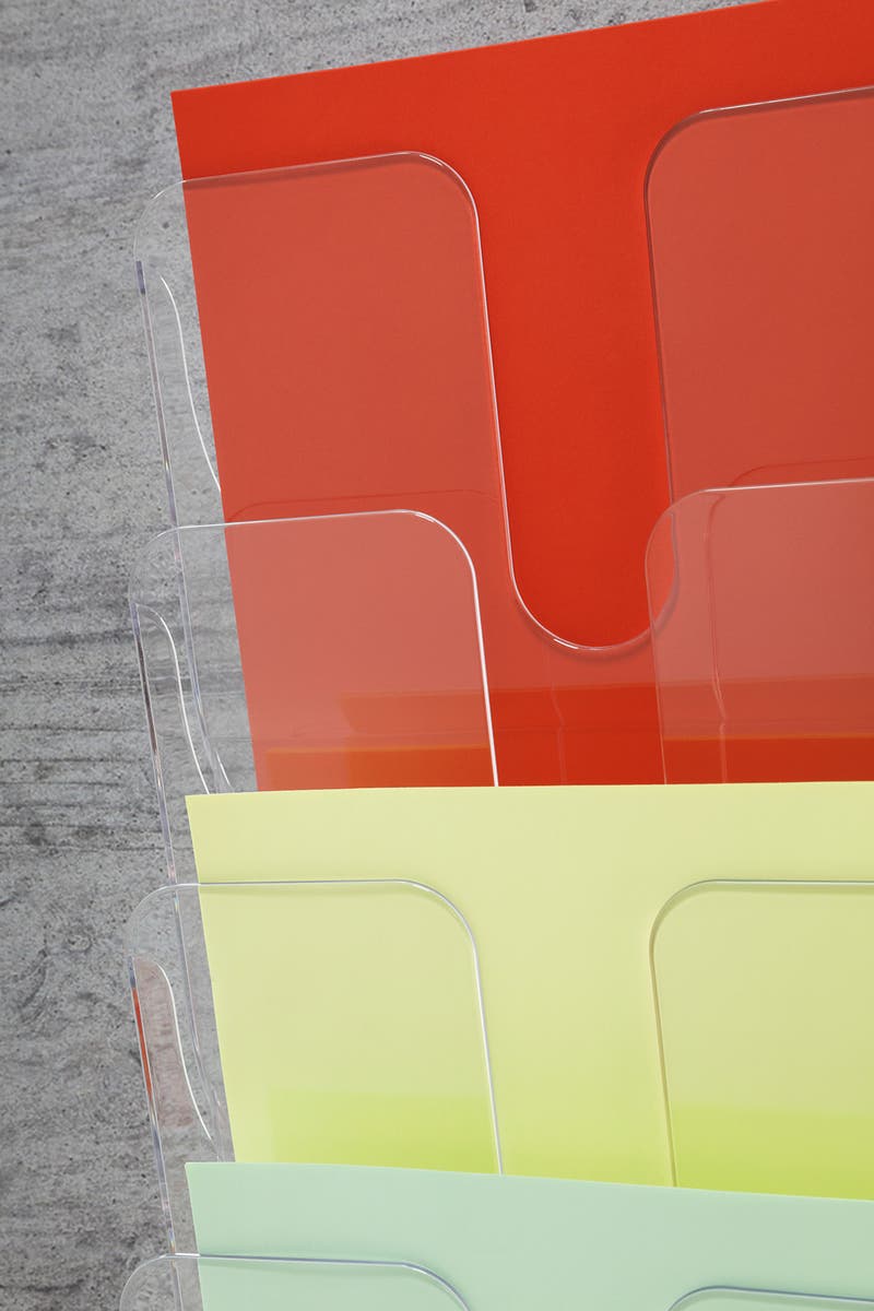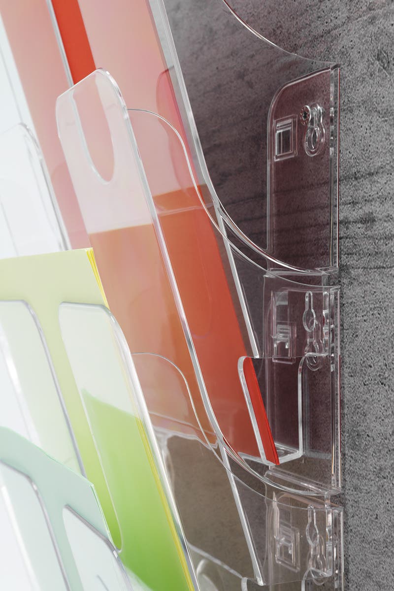Blankettfack, broschyrställ, postfack - Flexiplus är en serie med platsbesparande, flexibla och väggmonterade hållare för broschyrer, tidskrifter, blanketter och annan information i A4 format.