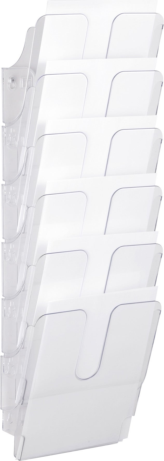 Varje fack har en kapacitet på 24 mm tjocka buntar. Detta är ett komplett set med 6 fack i stående format där facken kan monteras ihop eller användas var för sig. Ett set med skruv och plugg ingår.