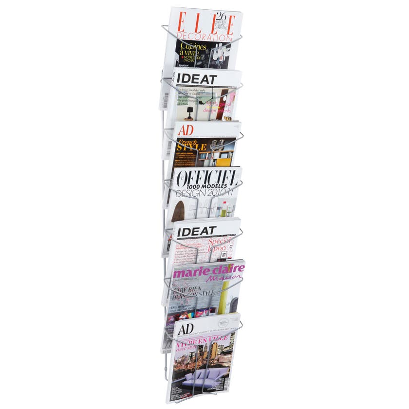 Stället är utrustat med sju rymliga fack som rymmer A4-dokument, tidskrifter eller broschyrer och gör det enkelt för besökare att se och ta material. De 4 cm djupa facken ger bra stöd även för tjockare häften och kataloger, samtidigt som den smala väggmonterade profilen sparar golvyta.