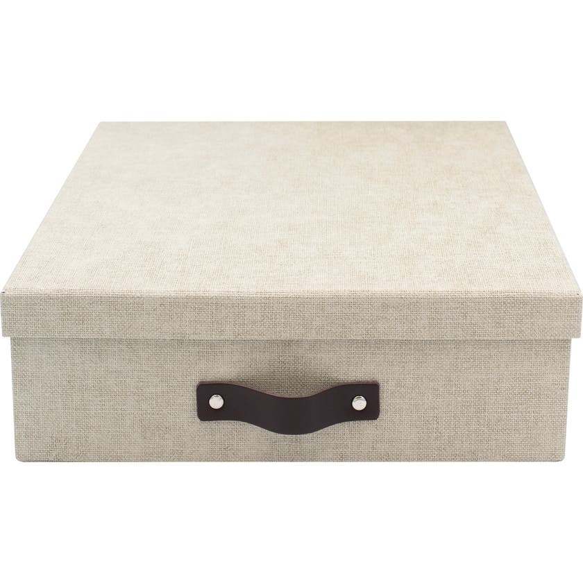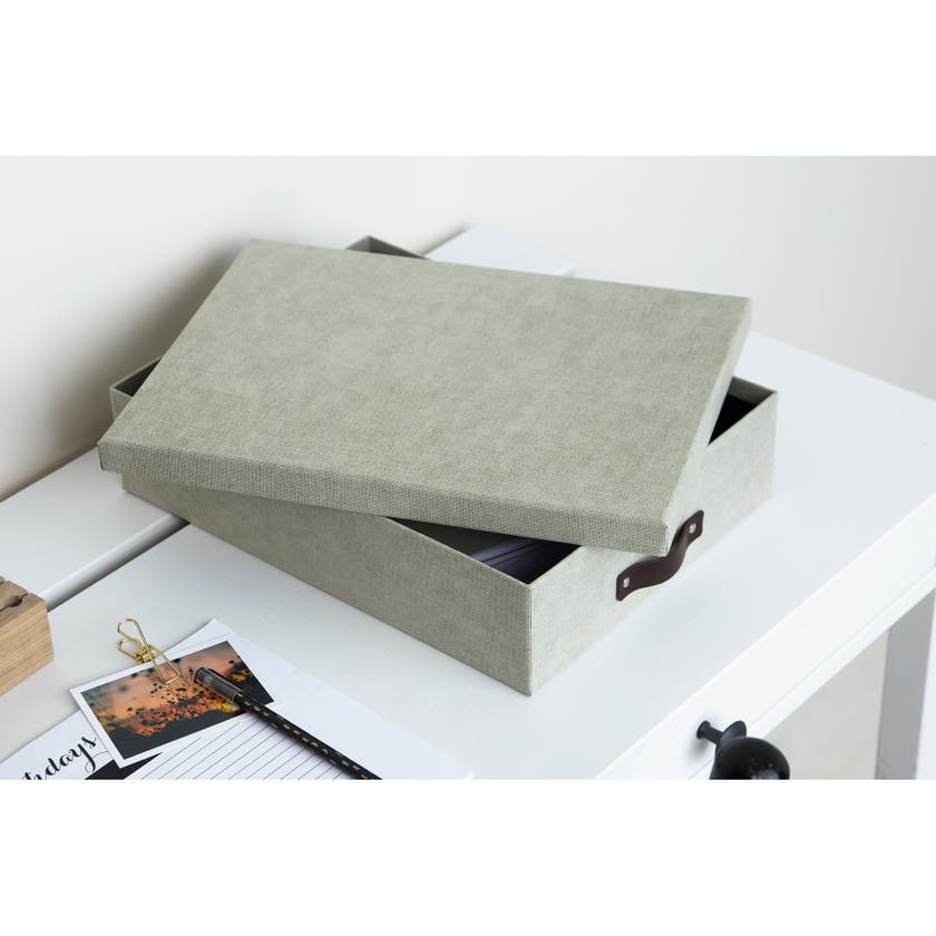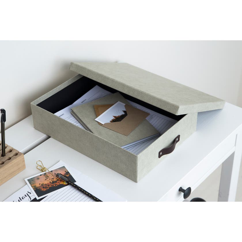 Brevbox Bigso Oskar canvas. Enkel, stilren förvaringsbox som passar lika bra på kontoret som hemma, där du vill ha ordning och reda. Med denna lite lägre brevbox kan du lätt hålla ordning på dina viktiga papper, dokument och även andra små prylar.