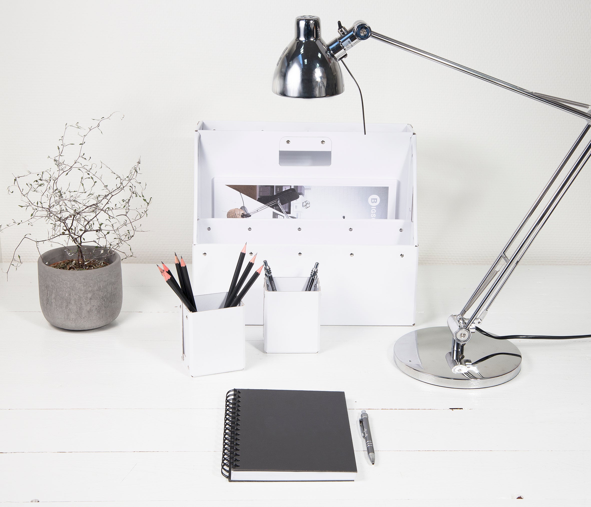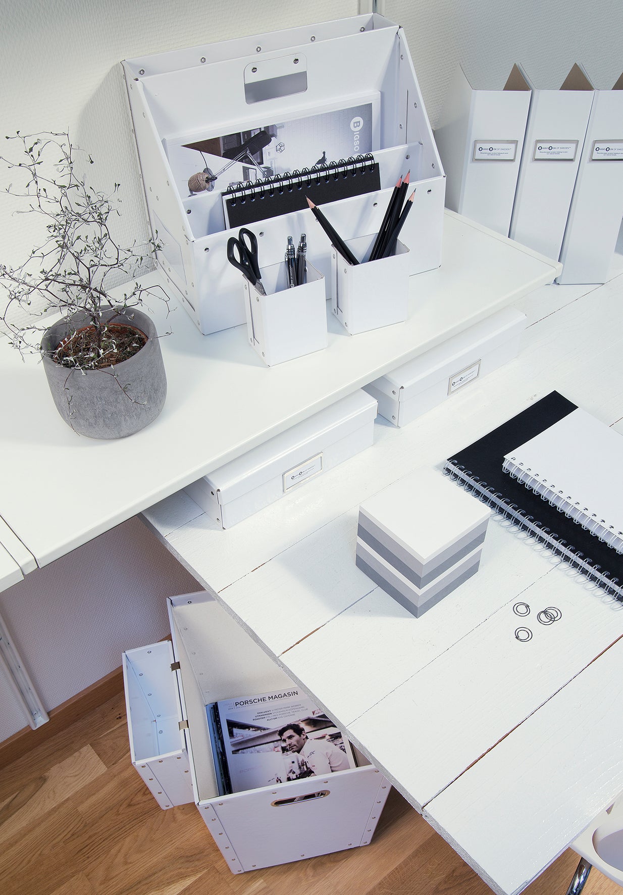 Du håller lätt ordning på dina viktiga papper, bärbara dator och andra små prylar. Ingår i en snygg och stilren skrivbordserie från Bigso som passar lika bra på kontoret som hemma, där du vill ha ordning och reda.
