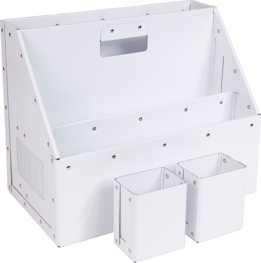 Förvaringsbox Carrie med 3-fack, från Bigso är en bärbar förvaring för det mobila kontoret, klassrummet eller konferensrummet. Tillverkad av återvunnet material såsom wellpapp och tidingar..