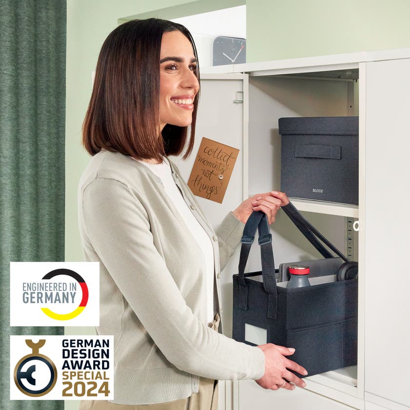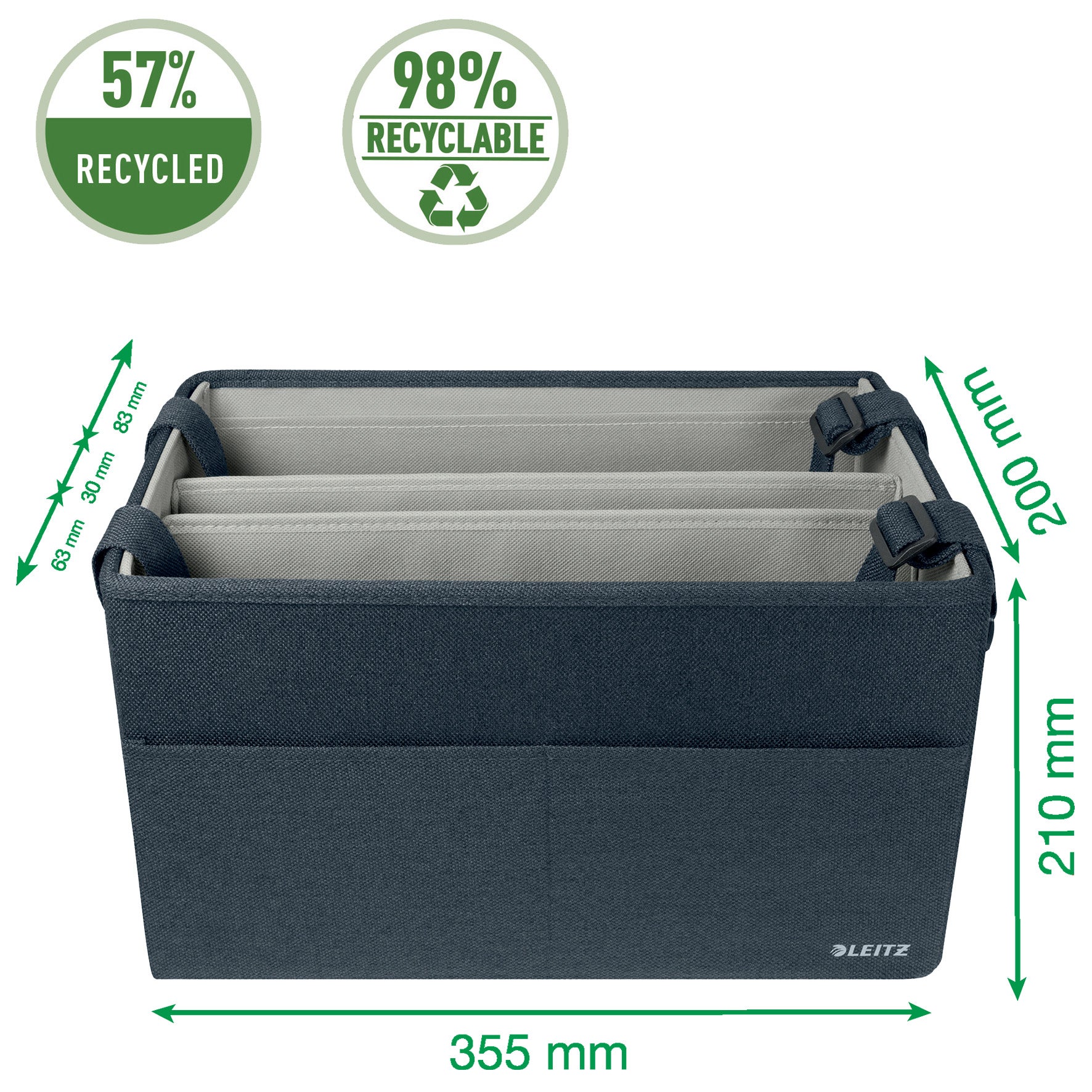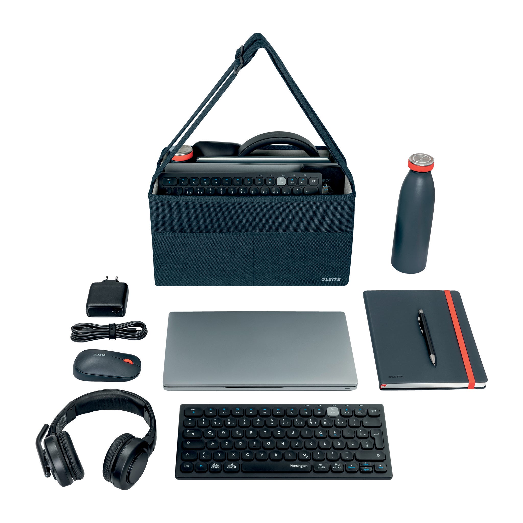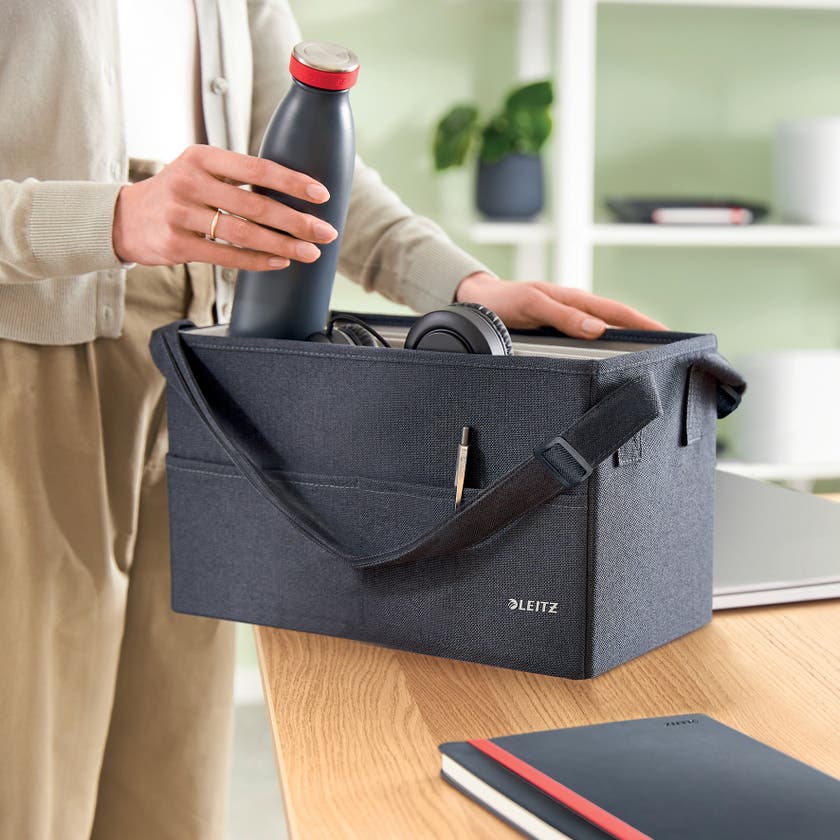 Ta med dig kontoret vart du än går med Leitz Fabric Storage. Den stilrena och moderna designen i mattgrått gör att du enkelt kan organisera dina saker, oavsett om du arbetar hemma, på kontoret eller i hybridmiljöer. Leitz kompakta Office-In-A-Bag-väska har tre separata fack, vilket ger gott om plats för allt du behöver under dagen.