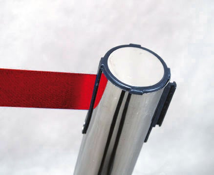 Effektivt skapa, stoppa eller avgränsa med avspärrningsband eller köband för tillfällig eller permanent avspärrning av folkflöden. Elegant fristående stolpe i rostfritt stål med rund fot. Varje stolpe har ett rött fjäderbelastat utdragbart rullband som enkelt fästs i nästa stolpe. Stolpe i rostfritt stål med rund fot. Bandet levereras utan tryck. Snabbt och enkelt att använda.