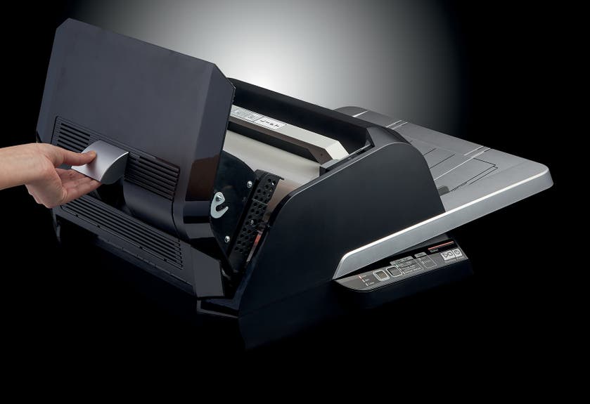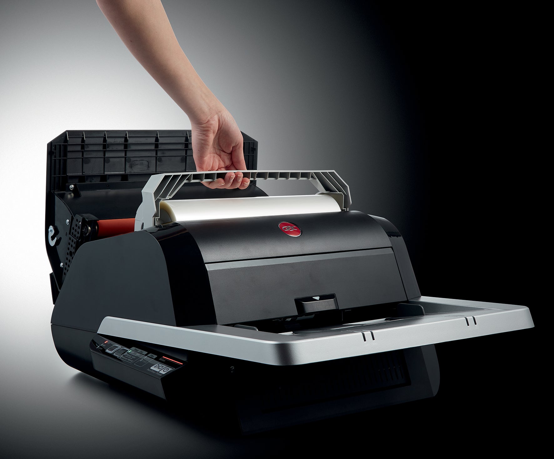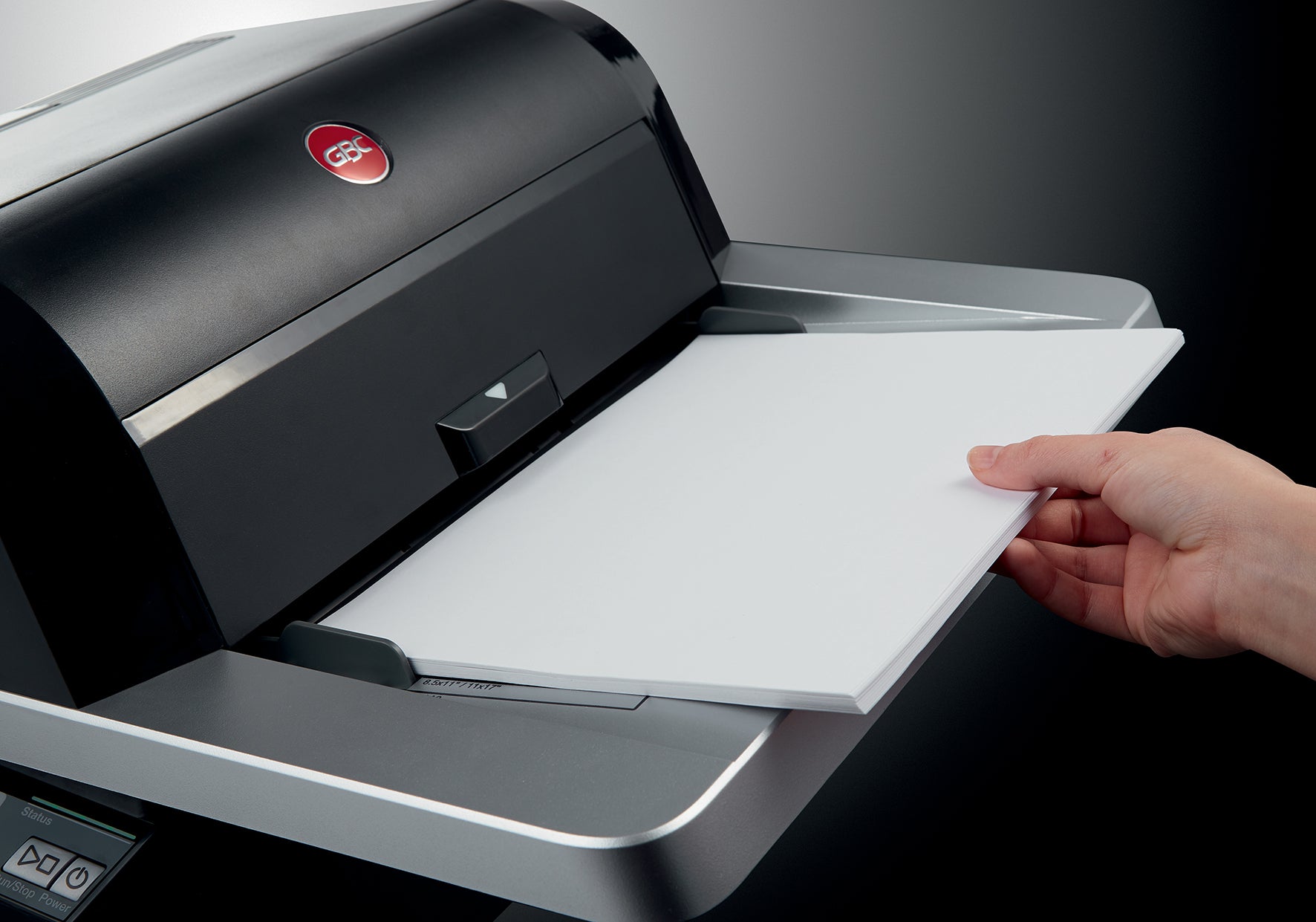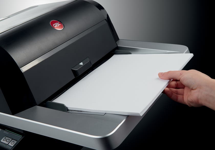 Lamineringsmaskin GBC Foton – som automatisk matar och laminerar upp till 30 A4- eller A3-dokument i taget. Spara 98% av din tid vid laminering med världens första helautomatiska lamineringsmaskin för kontoret. Placera dina dokument i facket för automatisk matning, tryck på startknappen och dokumenten lamineras automatiskt. Ladda, tryck, klart! Enkel laddning av laminatkassetten för perfekt laminerade dokument gång på gång. Perfekt för kontor med regelbundna lamineringskrav.