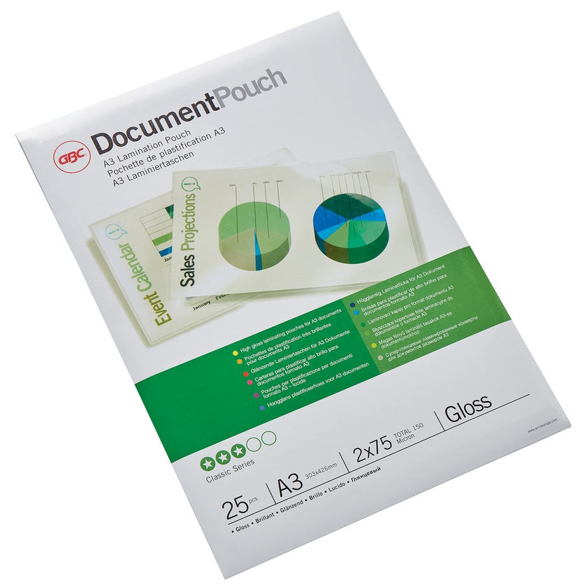 | Namn | Lamineringsfickor A3 75 mikron Gloss 25/fp |