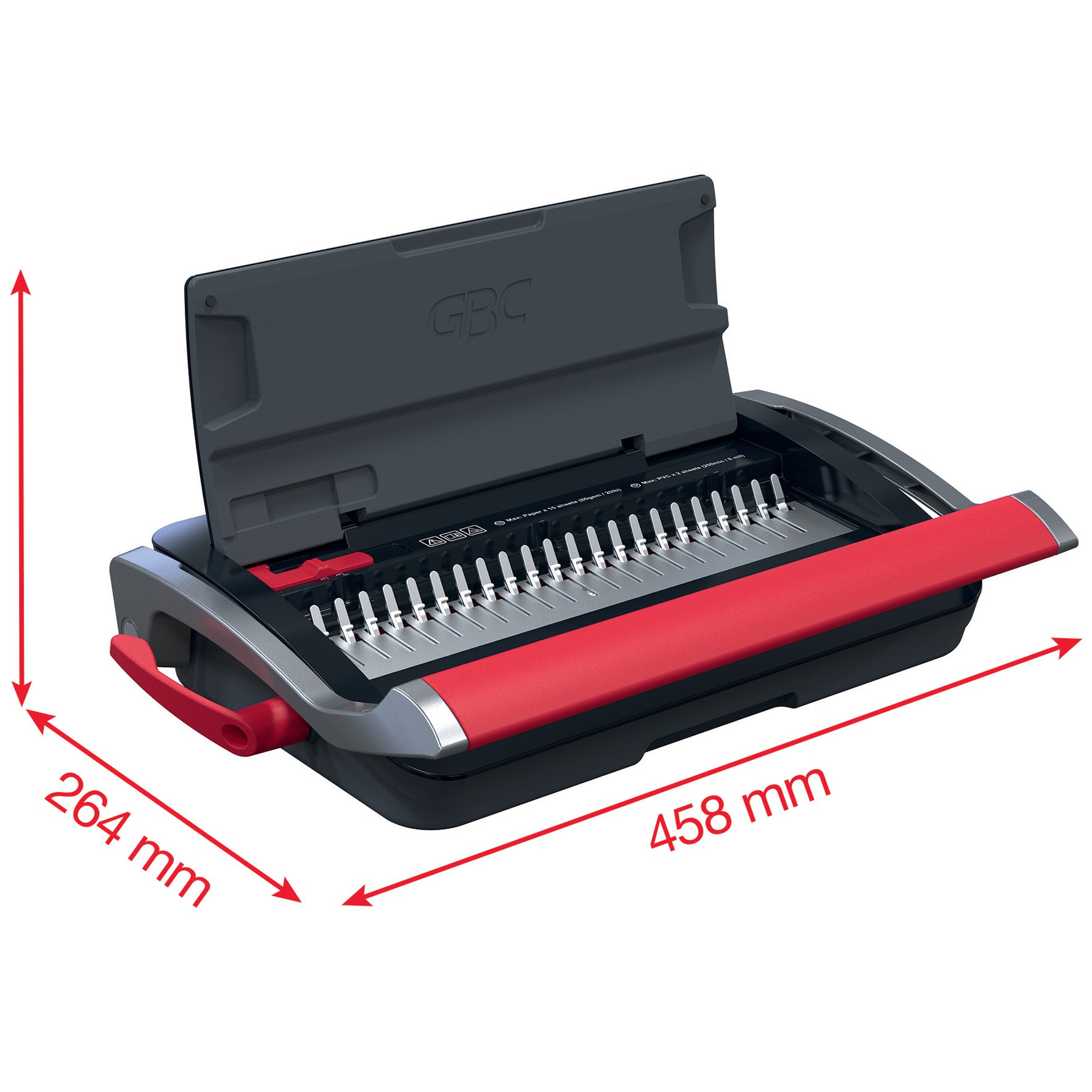 CombBind® CB15 från GBC är en pålitlig och kompakt, manuell inbindningsmaskin, idealisk för personligt bruk eller mindre kontor med låga volymer. Den stansar enkelt upp till 15 ark (80 g/m²) och kan binda upp till 165 ark med 19 mm spiraler. Den lätta och platsbesparande designen gör den enkel att använda var som helst och lätt att förvara när den inte används.
