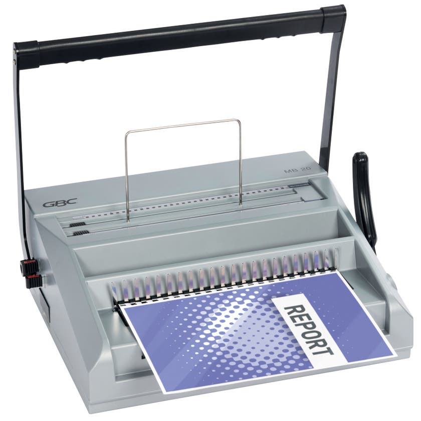 MB20 från GBC är en manuell och robust multifunktionell inbindningsmaskin som ger dig flexibiliteten att skapa både kam- och trådbundna dokument. Perfekt för små och medelstora kontor, kombinerar den en lätt och smidig design med enkel användning. Maskinen kan stansa upp till 20 ark (70 gsm) åt gången och binder effektivt upp till 500 ark med en 51 mm kam eller 125 ark med en 14,3 mm – 34 loop Wire.