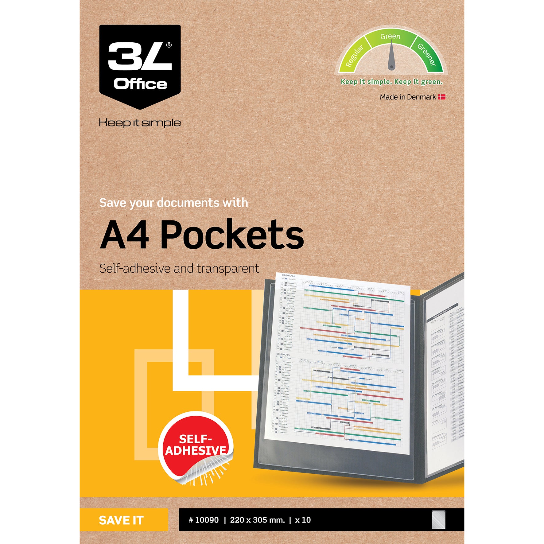 | Namn | Plastfodral 3L självhäftande A4 10 st/fp |