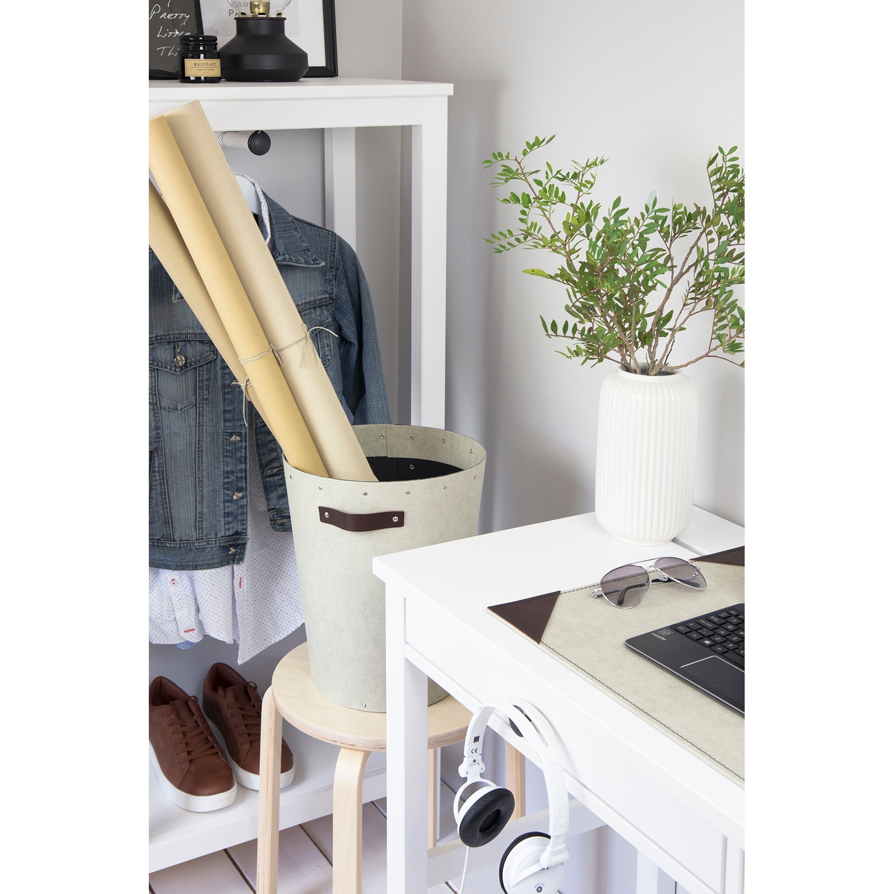 Aries är en stillren papperskorg från Bigso Box of Sweden med läder handtag. Snygg och tidslös design som passar alla hem och kontor. Tillverkad i återvunnen fiberboard - ett slitstarkt och återvunnet pappmaterial med canvasstruktur.
