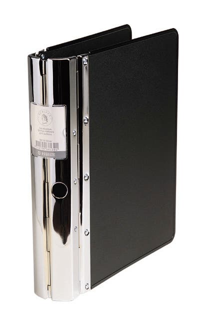 Med mekanism och med en solid konstruktion bestående av metallrygg och gångjärn tillsammans med fästplatta, klor och fingertryck, som ger skydd till dina dokument från stötar vid transport.