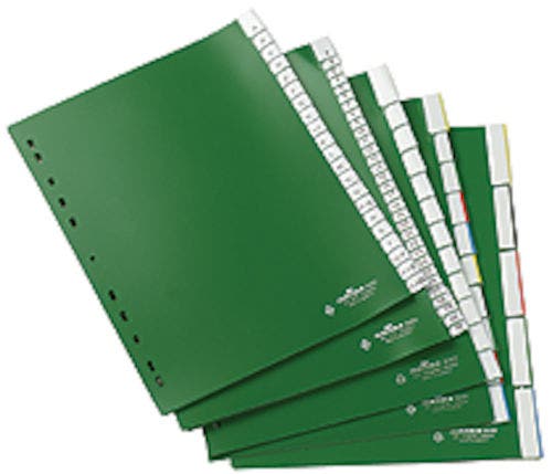Pärmregister insticks för flikar. Hjälpmedlet för att hålla ordning i pärmarna. De förtryckta avdelare är användarvänliga och ger enkel indexering och identifiering av innehållet. Avdelarna underlättar organiseringen.