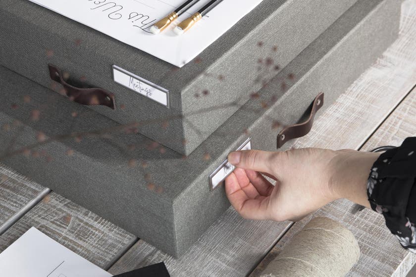 Etiketthållare Bigso. Perfekta för att hålla ordning på innehållet av dina pärmar och lådor.