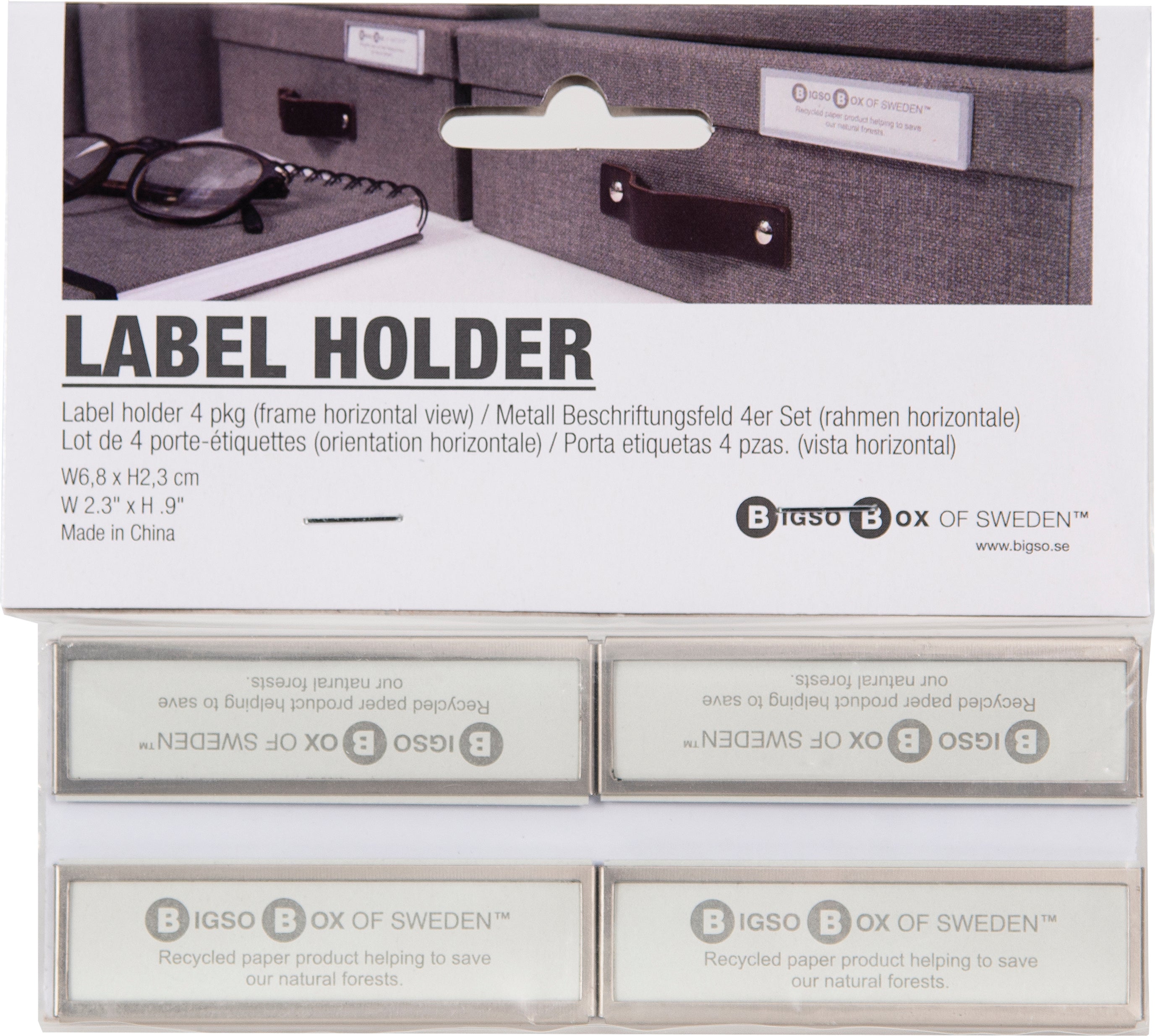 | Namn | Etiketthållare horisontell 4 st/fp Bigso |