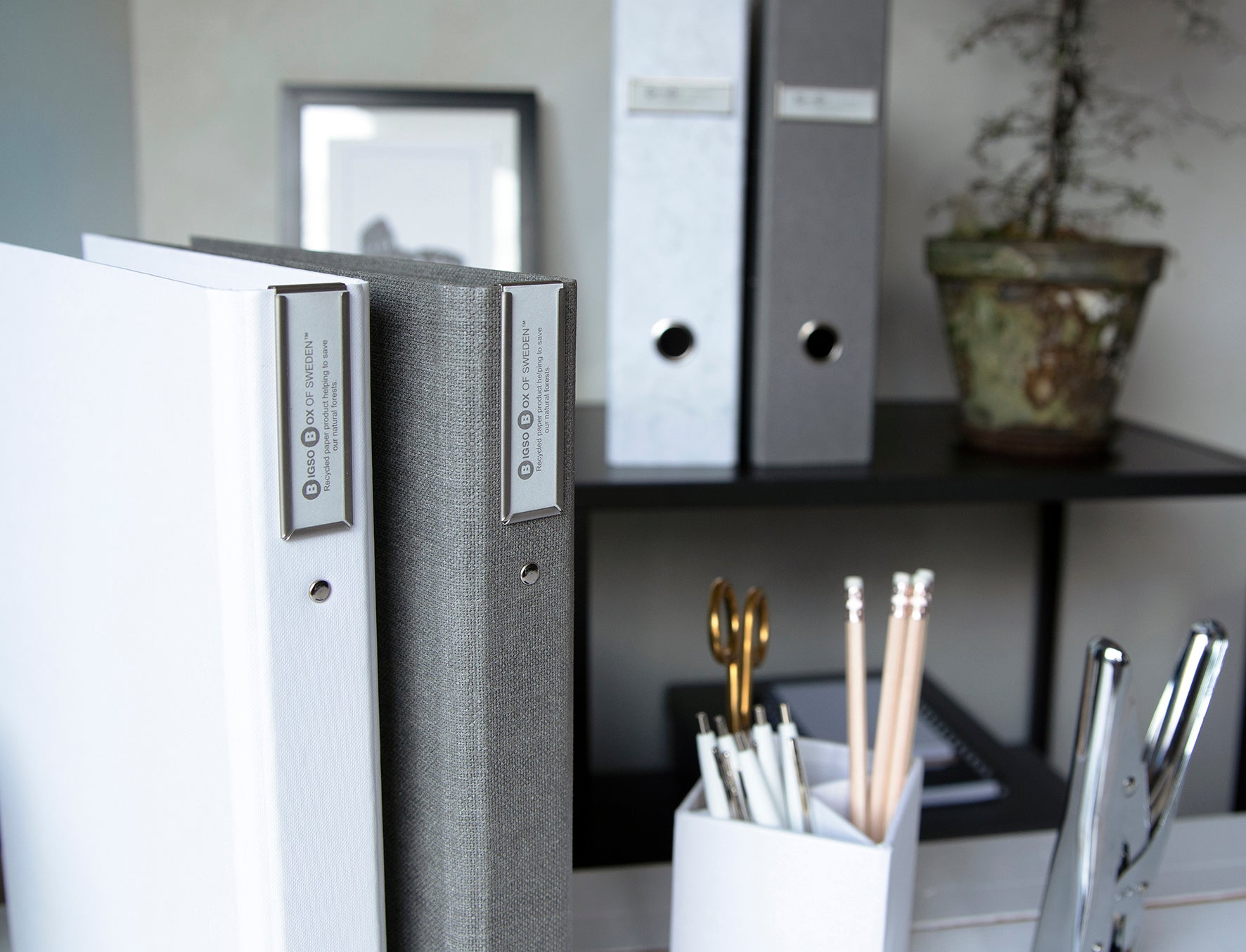 Ringpärm från Bigso tillverkad av tjockare återvunnen papp. En lagom stor pärm när du inte har så många blad som ska samlas ihop..