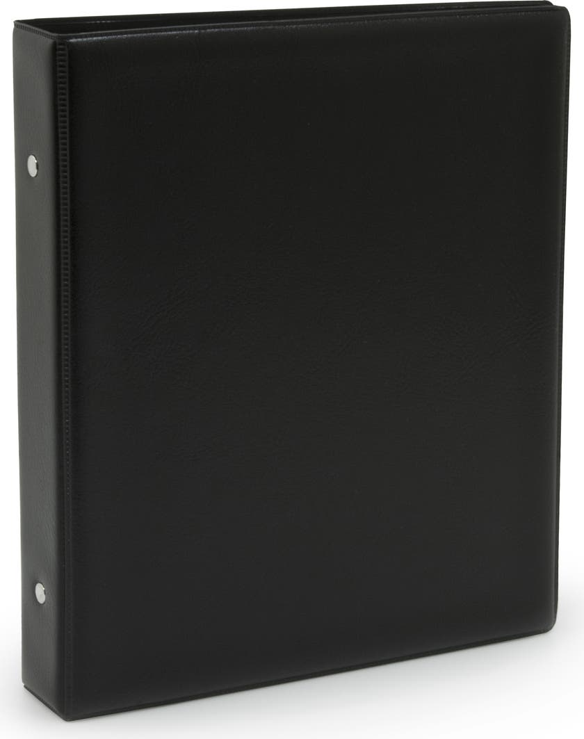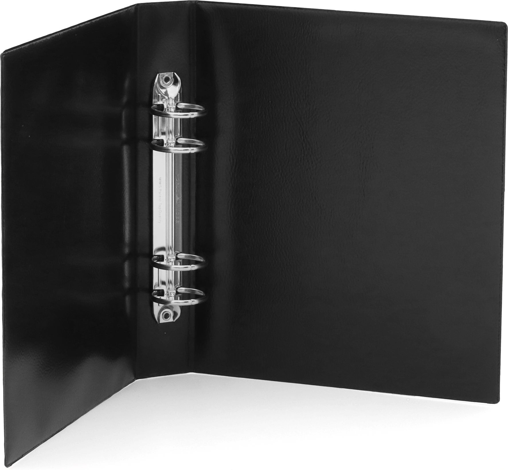Svetsad pärm med plan rygg. Ringpärm med hårda pärmsidor.