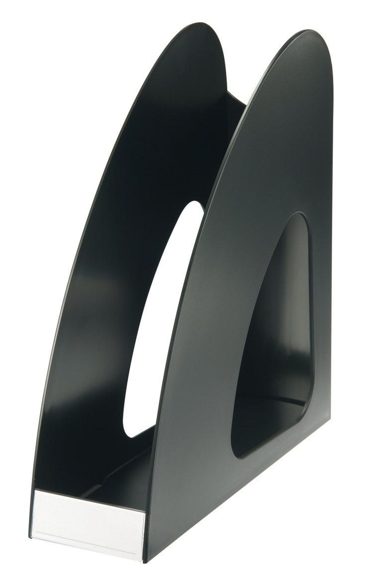 Snyggt och stilrent förvaring av tidskrifter eller viktiga papper i denna tidskriftssamlare Re-Loop HAN av styrenplast. Enkelt att sortera och få ordning på dina lösa blad, kataloger och tidskrifter. Välj färg efter dina behov och tema. Rätt sak på rätt plats. Håller ordning på dina papper och tidskrifter som du önskar att ha ståendes på skrivbordet eller i en bokhylla. Med fingerhål som underlättar när du behöver dra fram från hyllan * A4 * Finns i flera färger * Mått: 75 x 240 x 255 mm * Vändbar * Etiketthållare i öppningen * Miljöinfo: Blue Engel - 100% Returplast