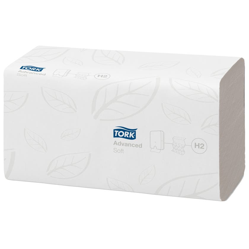 Pappret är tillverkat av 100% återvunna fibrer. Dekorativ lövdekor för att skapa ett gott intryck. Mönsterpräglingen förhöjer känslan på händerna och maximerar absorptionsförmågan. Utmatning av en handduk i taget minskar förbrukningen och ger förbättrad hygien. Advanced-kvalitet som ger lägre kostnader och hög prestanda.