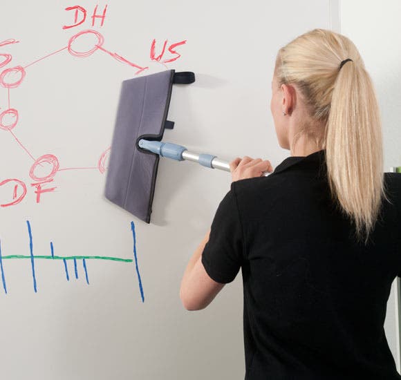 Rent och snyggt med bara vatten. Bara spraya vatten på ytan eller på moppen, torka av. Strukturen i mikrofibermoppen lämnar mycket små vattenpartiklar efter sig, dunstar snabbt och ett rent resultat fritt från ränder. Används tillsammans med moppstativ och ett kort teleskopskaft och du jobba ergonomisk.