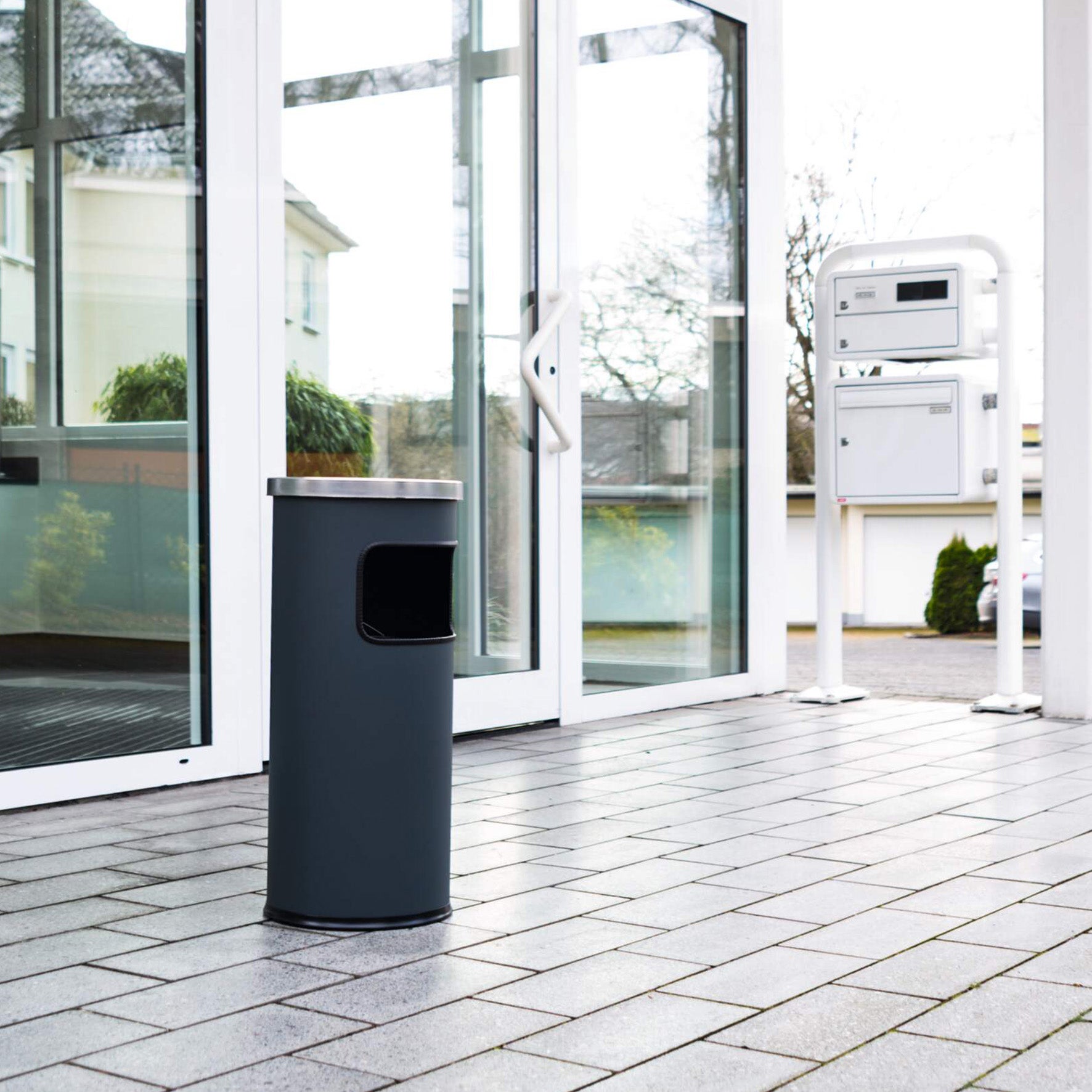 | Namn | Papperskorg med askkopp 17 liter Safe silver |
