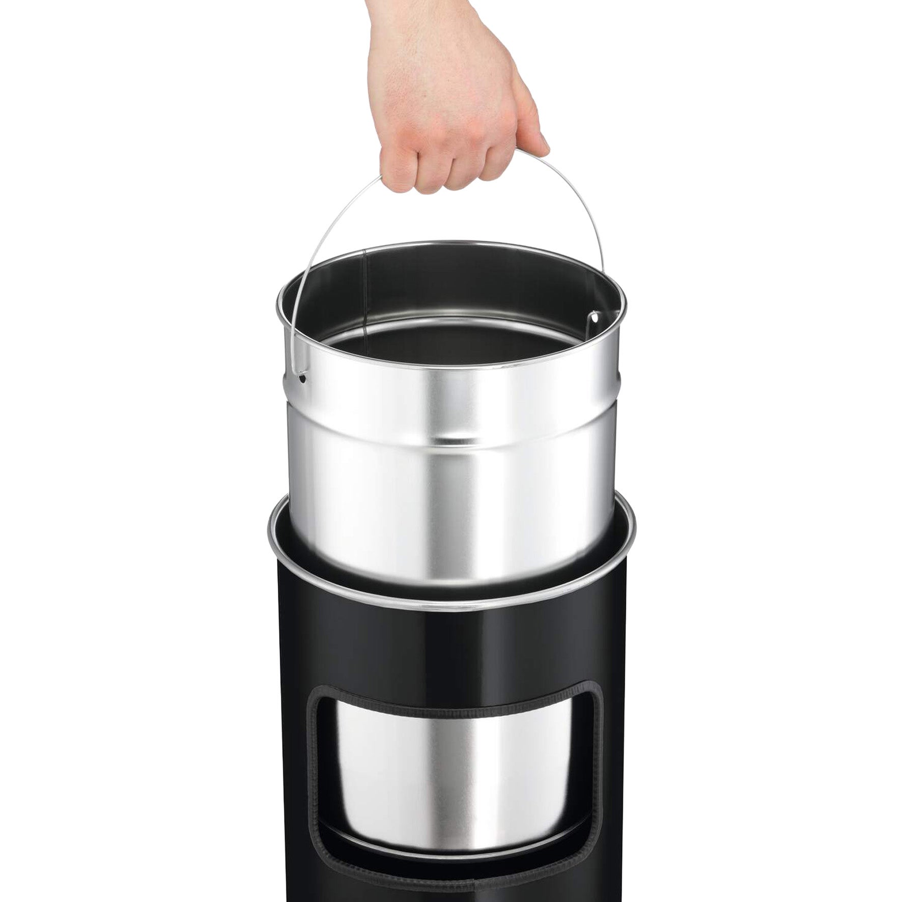 | Namn | Papperskorg med askkopp 17 liter Safe svart |