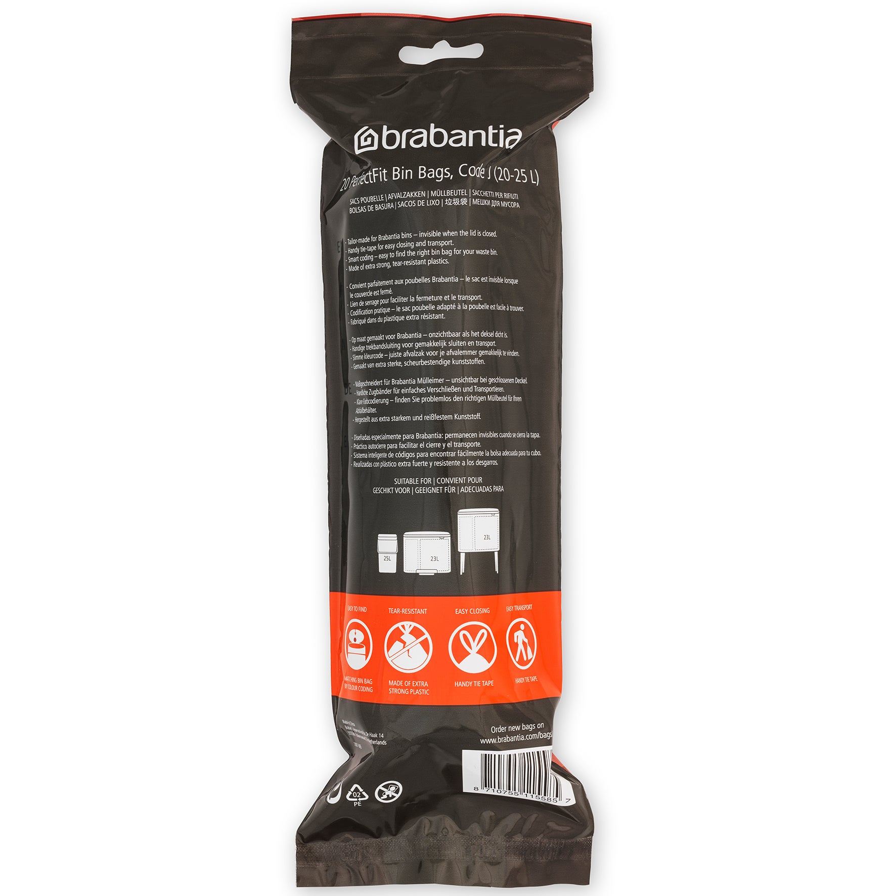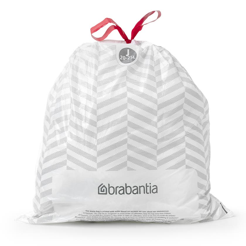 Matcha dina Brabantia avfallshinkar med lika praktiska avfallspåsar som är perfekt anpassade efter varje storlek. Dessa extra starka påsar är utrustade med praktiska knythandtag som gör dem superenkla att knyta ihop och hantera. Ett litet plus i kanten är att 6 liter påsen är komposterbar. Se enkelt vilken påse du behöver till dina hinkar genom att se färgkoden i locket på hinken som identifierar storleken på påsen.