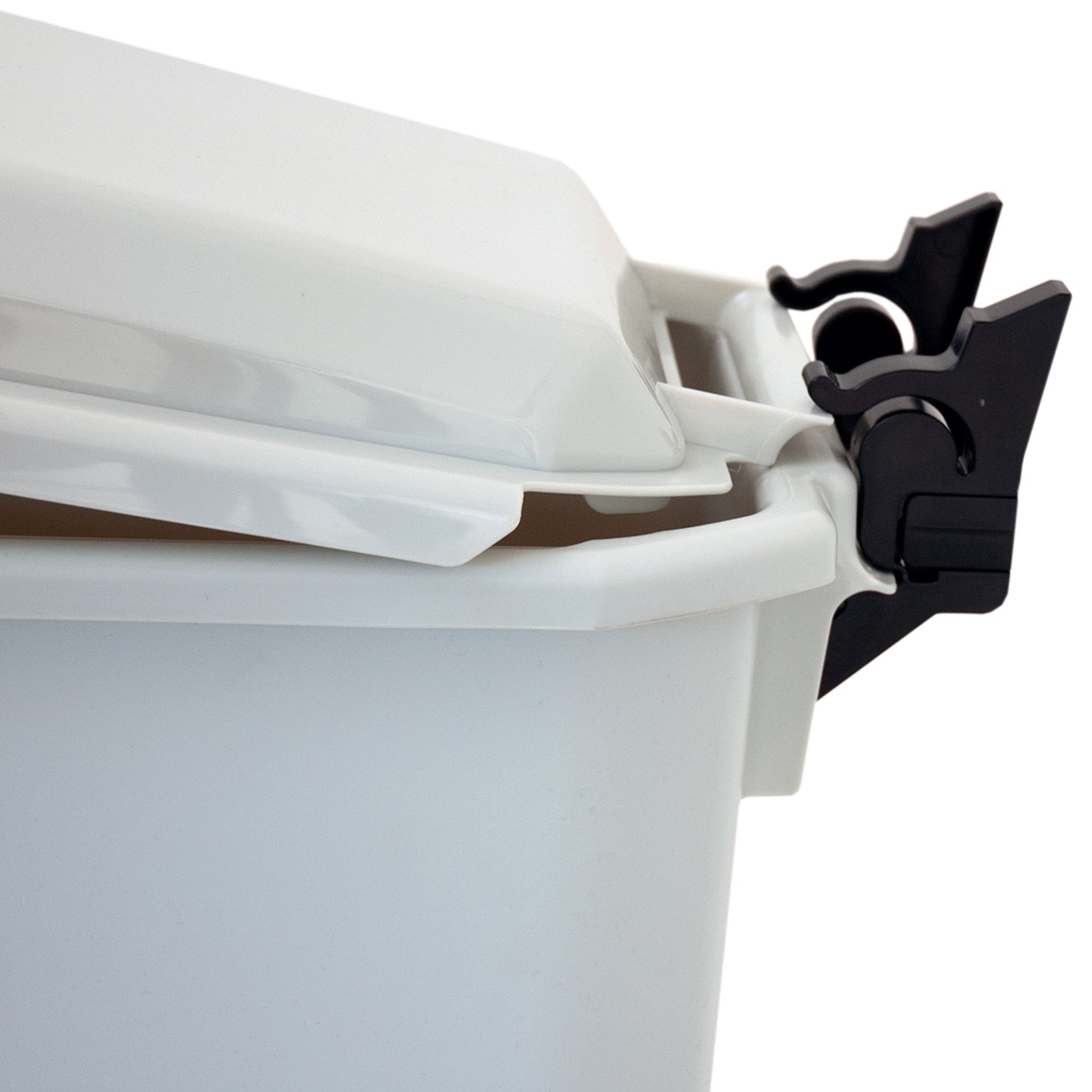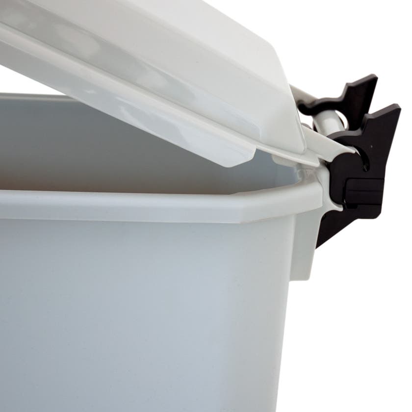 Gångjärn till Patricia soptunnelock. Unik konstruktion som låter locket stanna i öppet läge. Det går också att ta av locket med monterat gångjärn för enklare städning.
