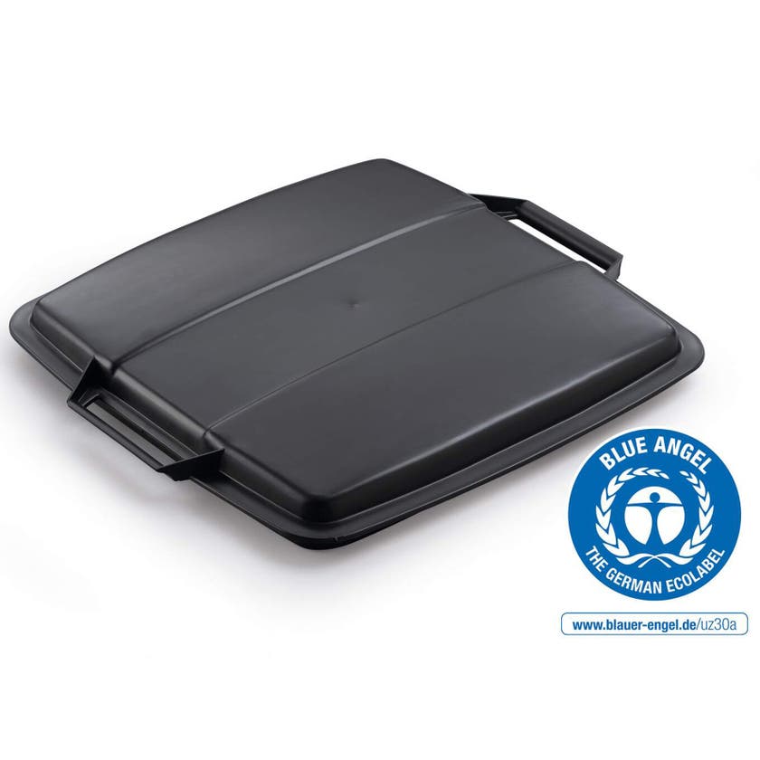 Locket Durabin® ECO 90 är certifierat med den tyska miljömärkningen Blue Angel, som sedan 1978 har varit en pålitlig vägledning för mer hållbar konsumtion och ställer höga krav på miljövänlig produktdesign. Locket är tillverkat av minst 80% insamlad återvunnen plast, har lång livslängd och är helt återvinningsbart. Det är en del av den mångsidiga Durabin-serien, som lämpar sig för många olika användningsområden – exempelvis som stor papperskorg, vid återvinningssortering eller för förvaring av upphittade kläder.
