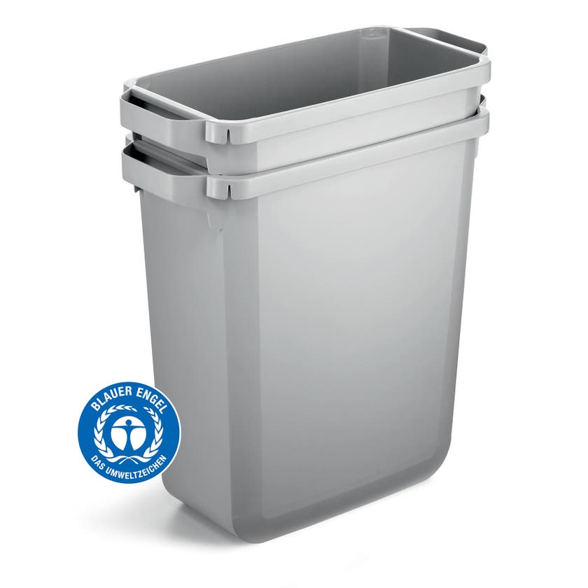 Durabin® ECO 60 är en miljösmart avfallstunna certifierad med den tyska miljömärkningen Blue Angel – en garanti för miljövänlig produktdesign och hållbar konsumtion sedan 1978. Kärlet tillverkas av minst 80 % insamlad återvunnen plast och är samtidigt slitstarkt, långlivat och fullt återvinningsbart.