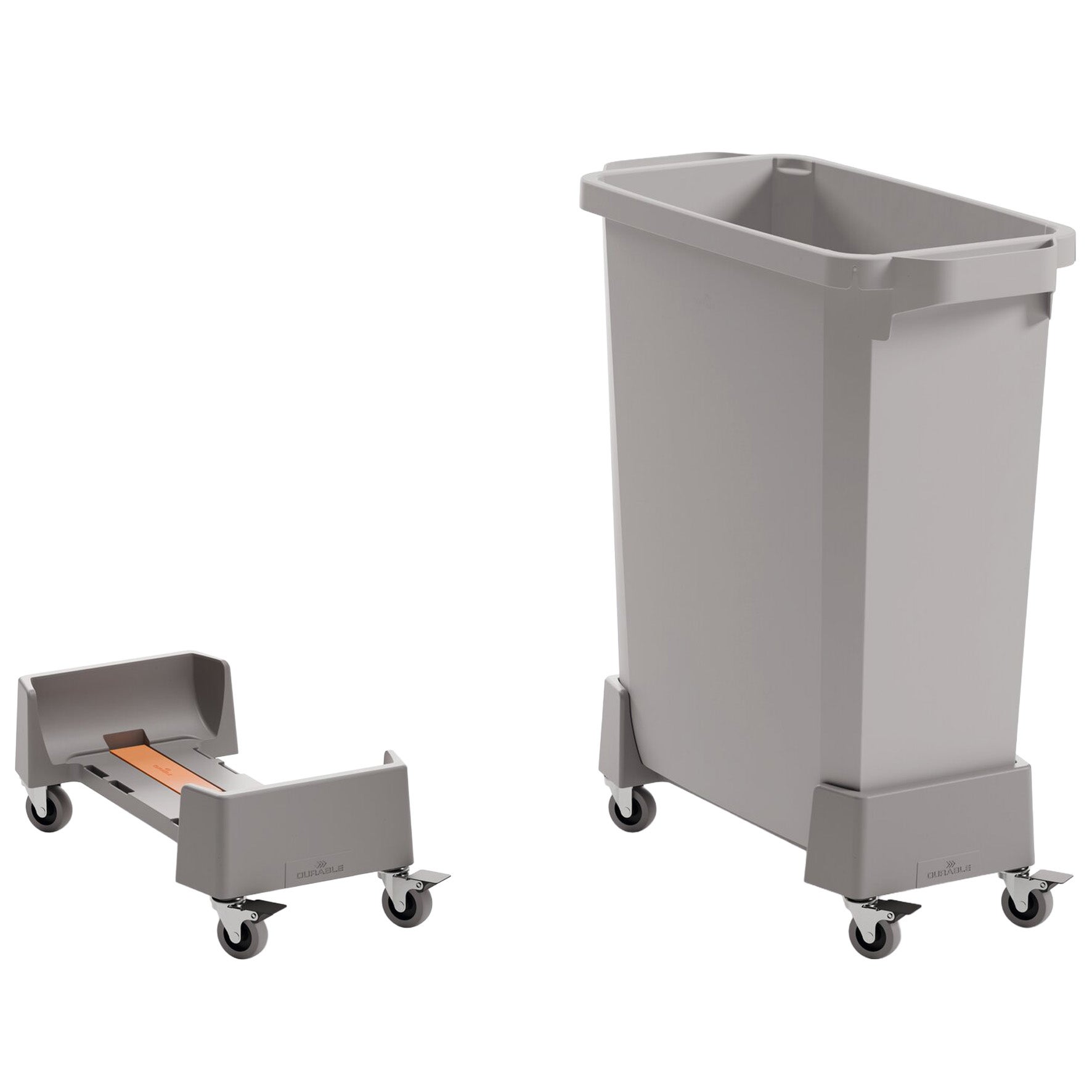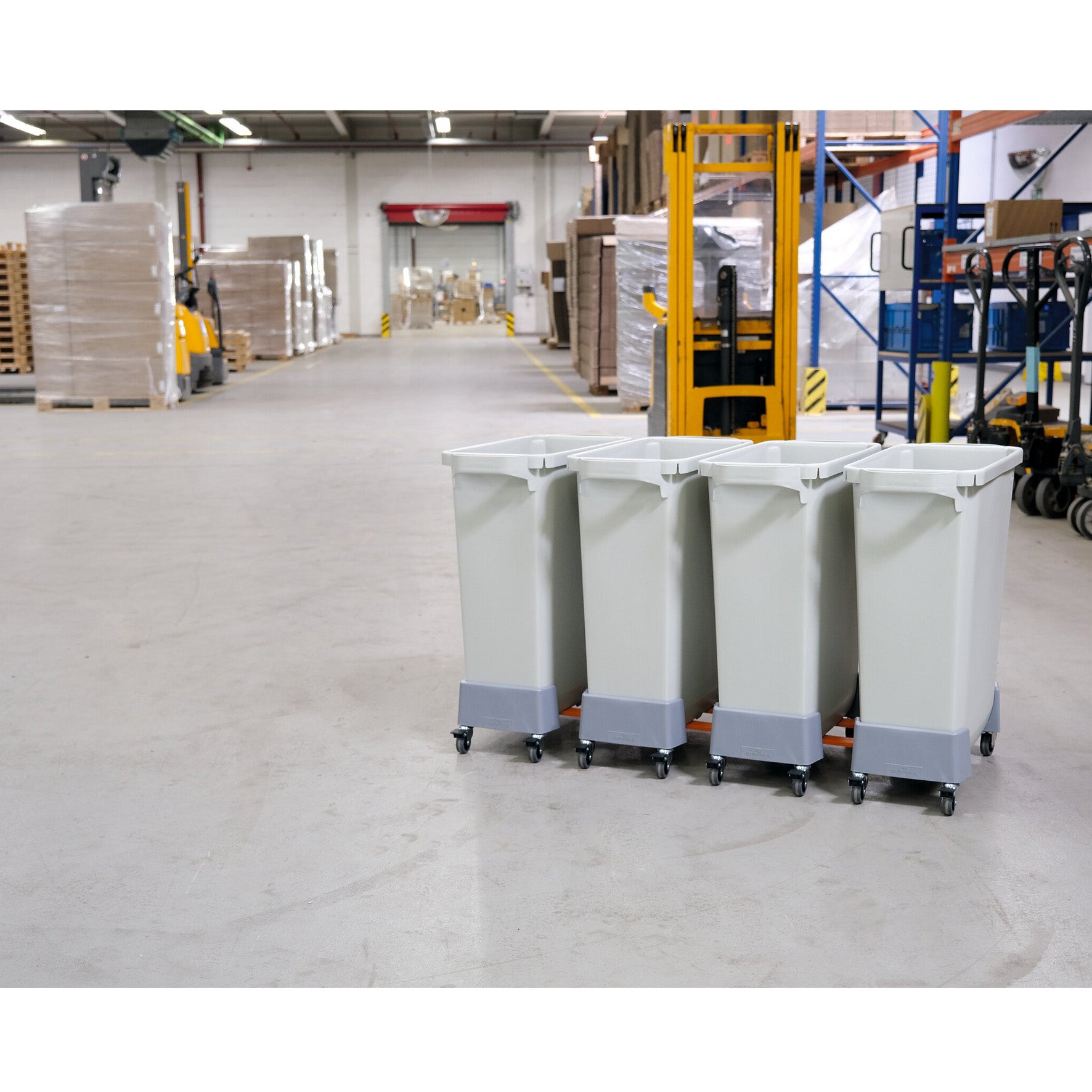 Vagnen Durabin® 60 rPP gör det enkelt att flytta en fylld Durabin® 60 liters soptunna på ett smidigt och säkert sätt. Perfekt för hantering av material som råvaror, återvinningsbart avfall eller matrester som ska transporteras till en annan plats. Passar för användning inomhus eller i skyddade utomhusmiljöer med plana underlag, exempelvis i lager, produktionslokaler eller matsalar.