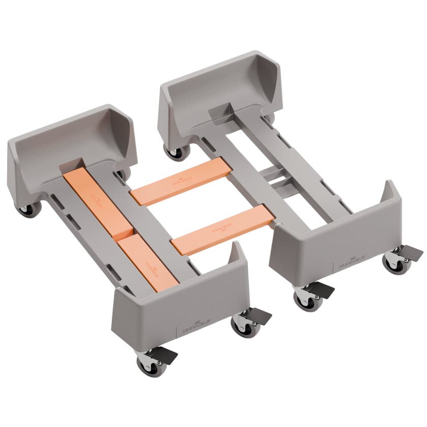 Upp till fyra rullplattor kan kopplas samman med hjälp av de integrerade kopplingarna som medföljer. Detta skapar en flexibel och effektiv lösning för transport av flera tunnor samtidigt.