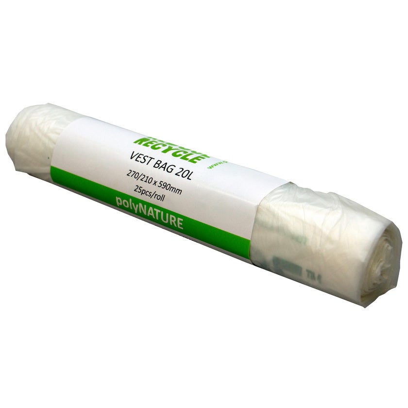 | Namn | Soppåse Polynature 20 liter vit 25/rulle |