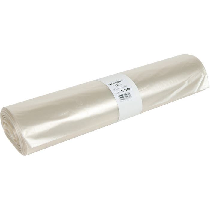 | Namn | Sopsäck 125 liter transparent 40my 25 st/rulle |
