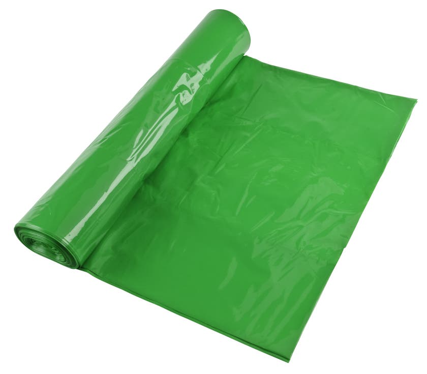 Prima säckar på rulle, anpassade för optisk sortering vid avfallsanläggning. Den gröna färgen markerar komposterbart avfall. Tillverkade av slitstark LD-polyeten.