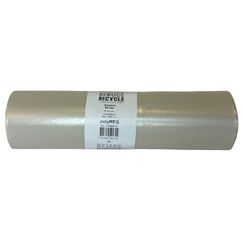 Sopsäck PolyREG 60 liter transparent 35 my 9x25 st
