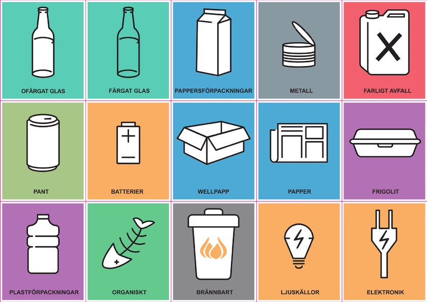 - Återvinningsdekaler / källsorteringssymboler