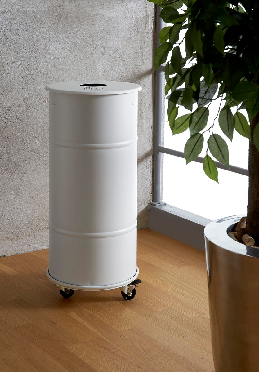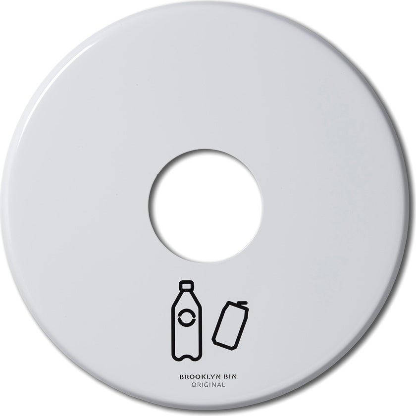 Lock till Brooklyn Bin soptunna 45 liter med screentrycksymbol. Hålet är utformat efter sorteringsbehovet.