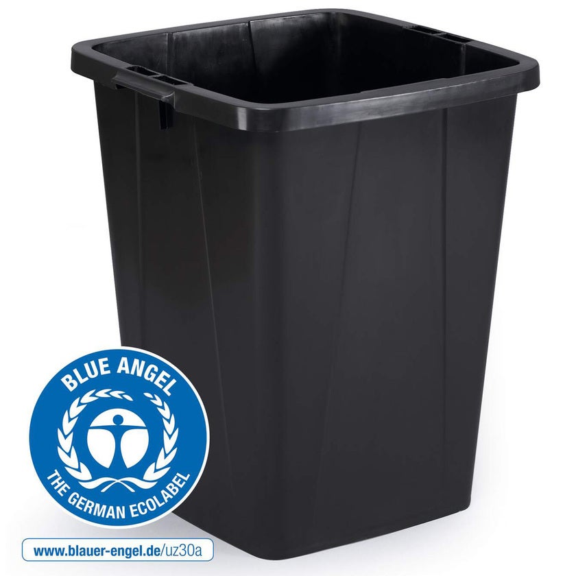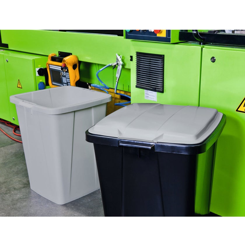 Kvadratisk soptunna i plast med bärhandtag för enkel transport. Idealisk för mycket avfall, sortering och återvinning. Lock finns som tillbehör.