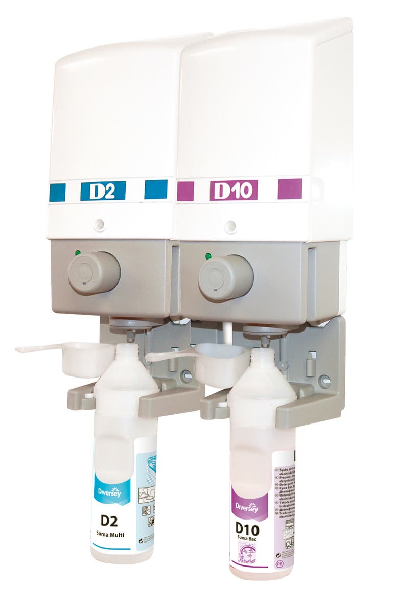 Dispenser Divermite S för kök – för dosering i flaska. För påfyllning av flaskor med D2 och D10.