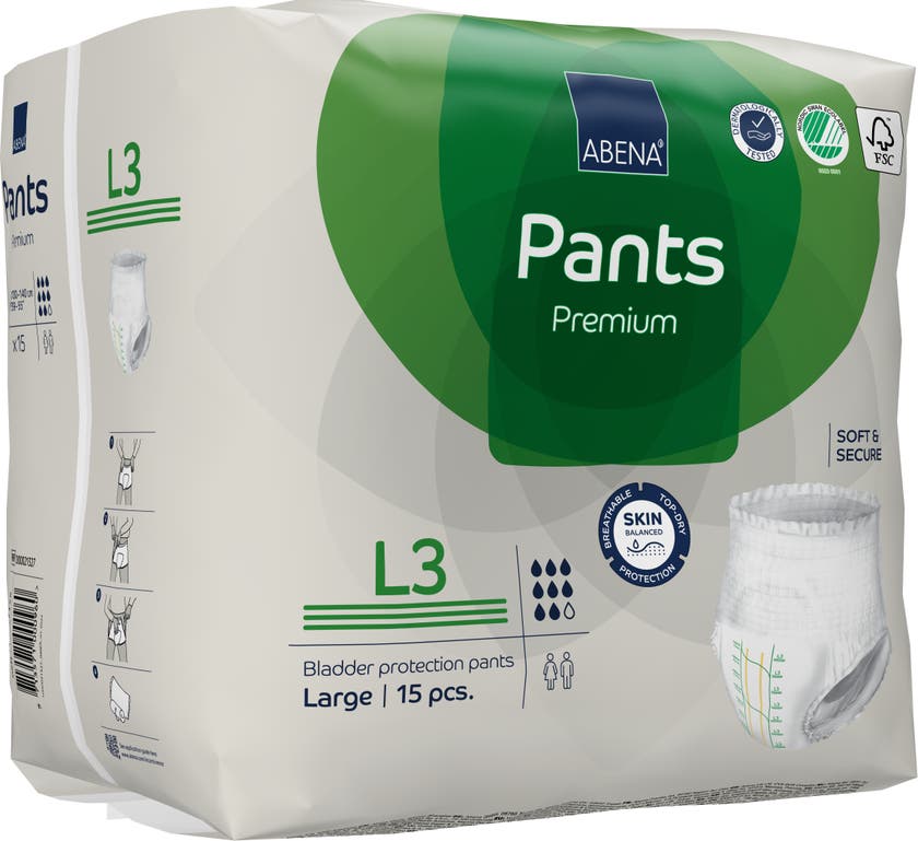 Inkontinensskydd pants L3. Abena Pants, Premium 100 - 140 cm. Engångsbyxor som kan bäras som vanliga underkläder.