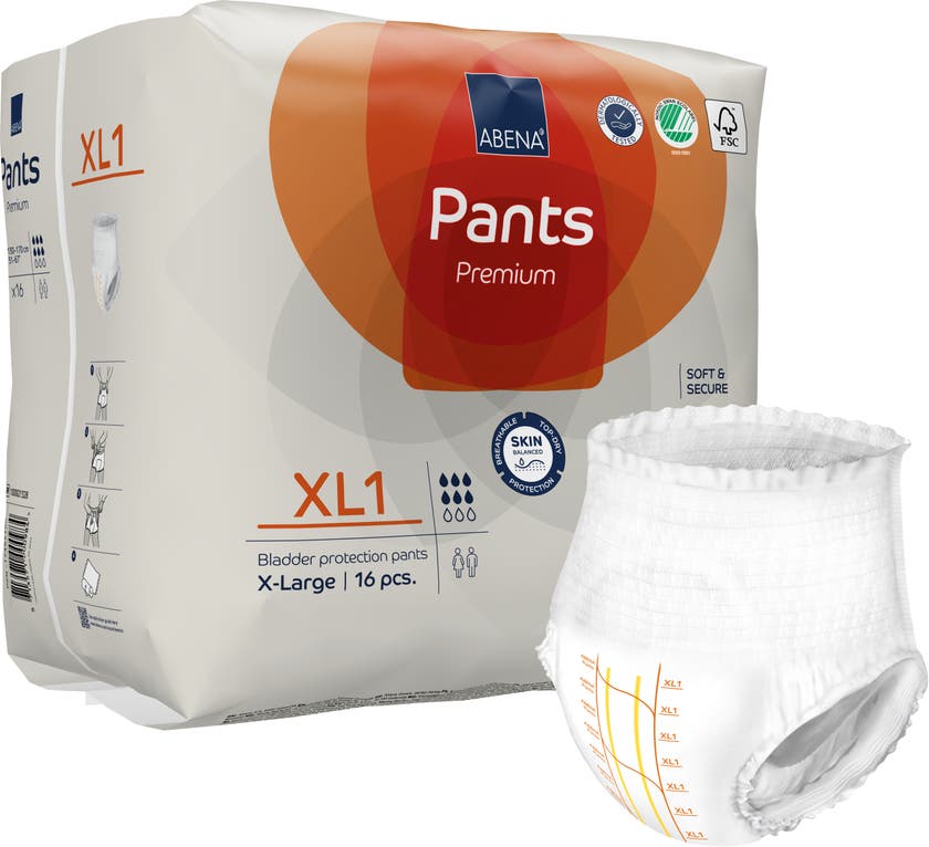 Inkontinensskydd XL1. Abena Pants Premium 130 - 170 cm. Engångsbyxor som kan bäras som vanliga underkläder.