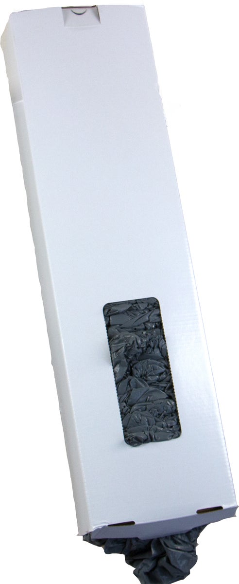 Hållare för engångsskoskydd. Praktisk vit och stilren skoskyddshållare som kan hängas upp på väggen. Snyggt och ergonomiskt, samt att man slipper blanda ihop rena och smutsiga skoskydd. Fylls enkelt på med skoskydd i refillkartong art 8556041 eller 8556043.