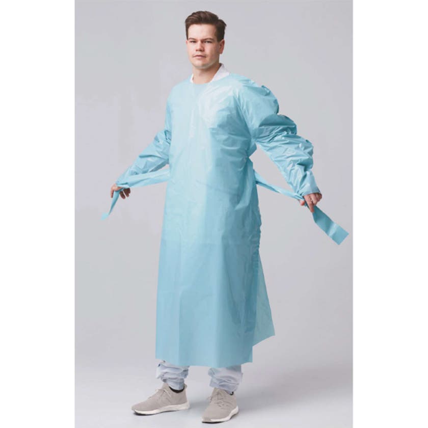 Skyddsrock lång ärm - TrioMummel är en långärmad skyddsrock framtagen för att skydda sjukvårds- och hemtjänstpersonal vid provtagning och behandling av patienter eller brukare. Skyddsrocken är tillverkad med återvunnen råvara, i polyetenplast av ett helt vattentätt material som är mjukt och bekvämt att bära.