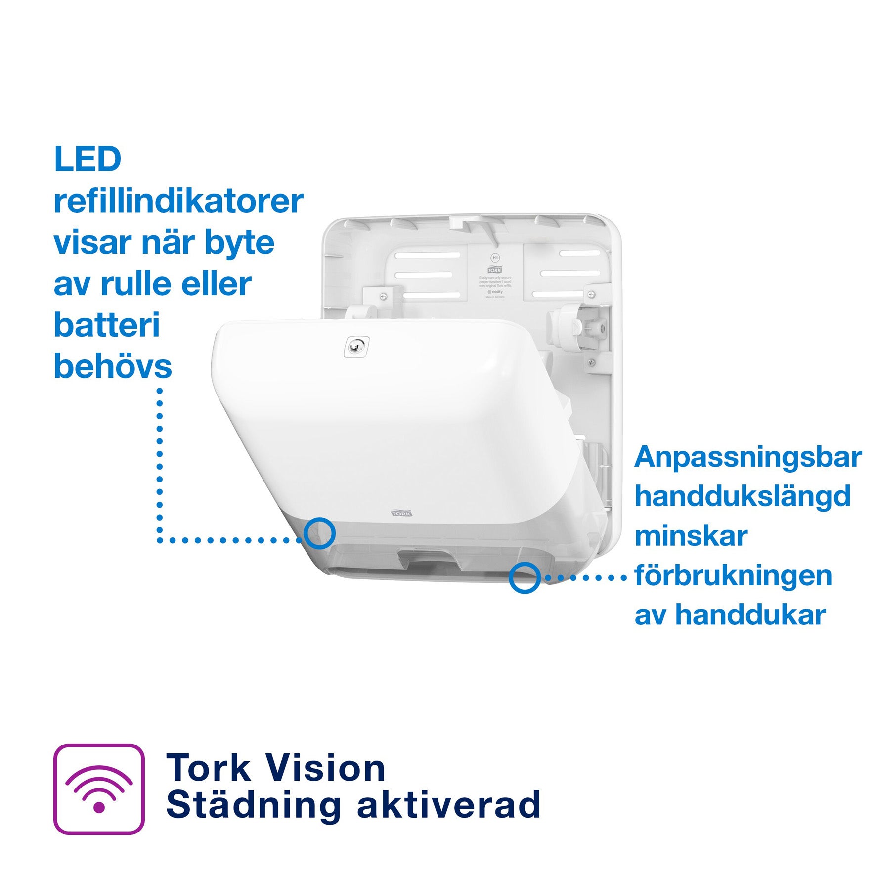 Tork Matic® Sensor Dispenser för handduk på rulle i Elevation-design ger dina besökare bästa möjliga upplevelse med beröringsfri handavtorkning. Dispensrarna i Elevation-serien har en funktionell, modern design som skapar ett bestående intryck hos dina besökare. Utmatning av ett ark i taget minskar förbrukningen och ger förbättrad hygien. Enkelt underhåll tack vare LED-refillindikatorn som visar när det är dags för påfyllning. Anpassningsbar handdukslängd gör att du kan välja den storlek som passar för din verksamhet. En rullösning som säkerställer noll pappersavfall.