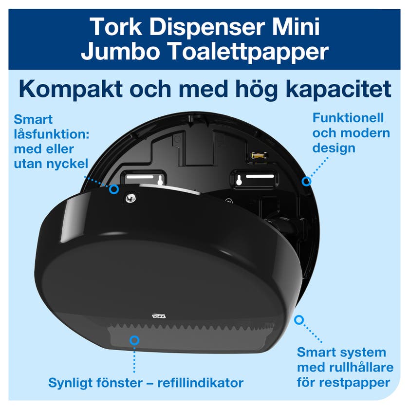 Dispenser Toalettpapper Mini Jumbo Tork T2 svart