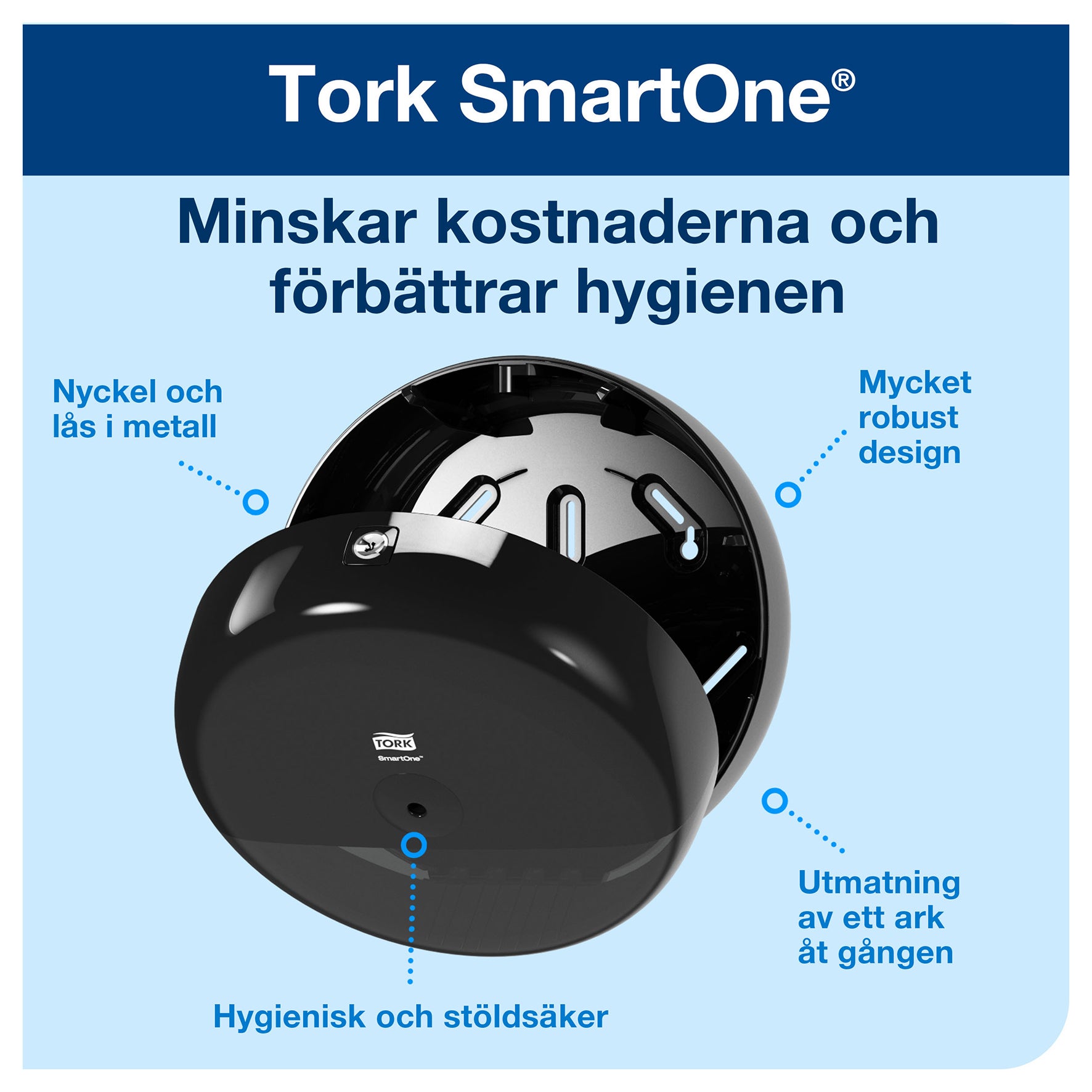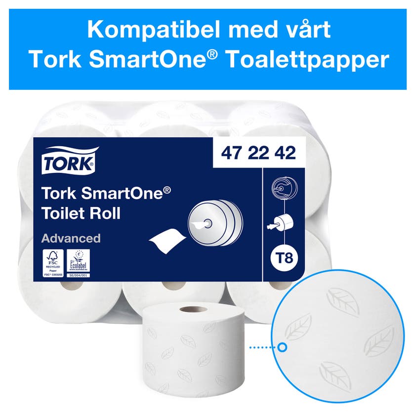 TORK Dispenser SmartOne® Toa T8, Dispensering av ett ark åt gången bidrar till att minska förbrukningen med upp till 40%. Extra hög kapacitet, räcker till många besökare.