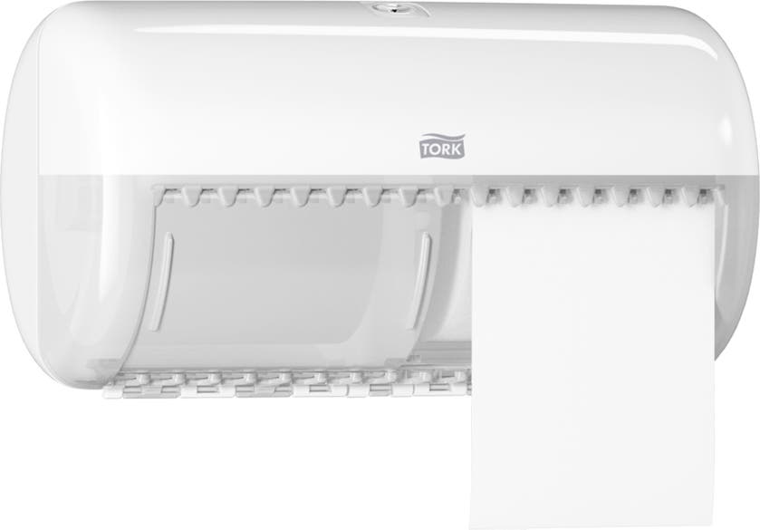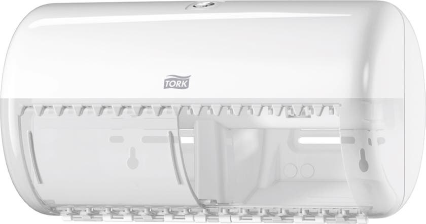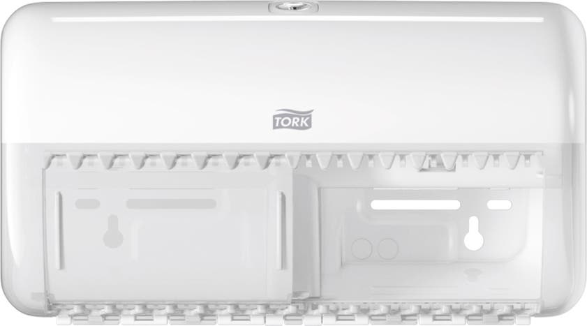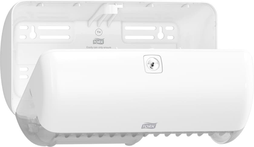 Tork Dispenser T4 Toalettpapper i Elevation design passar perfekt för toalettutrymmen med låg besöksfrekvens och minskar underhållet, eftersom den har plats för två vanliga toalettpappersrullar. Elevation dispensrar har en funktionell och modern design som skapar ett långvarigt intryck hos dina besökare.