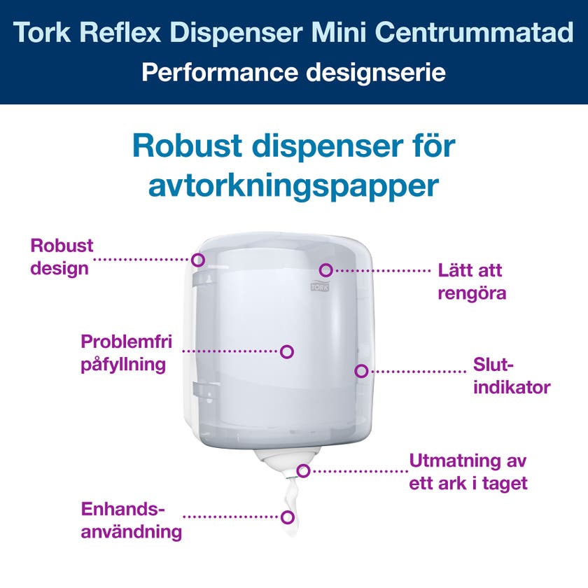 | Namn | Dispenser Tork Reflex M4 Centrummatad Vit |